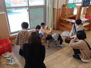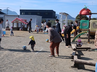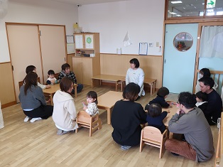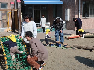 保育参観と懇談会を行いました。戸外では遊具や砂場で遊んだり、室内ではゲーム等を行い、親子で楽しそうに過ごす様子が見られました。懇談会では、園での様子やお家での様子を保護者の方とゆっくりお話しすることができ、有意義な時間を過ごすことが出来ました。